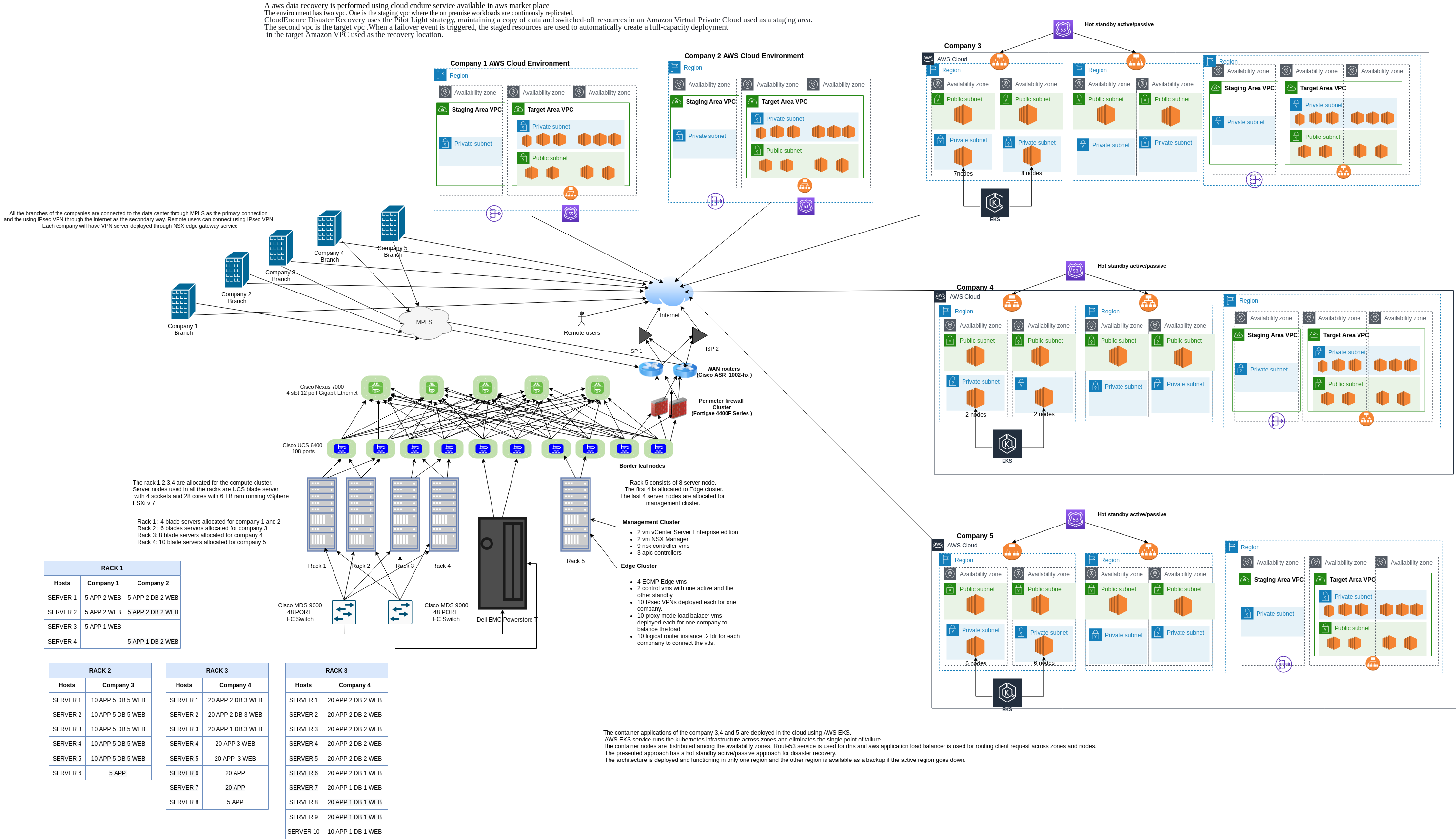 The design encompasses both the physical and logical topologies of the data center, detailing the hardware, software, and configurations required to support the operational needs of five distinct companies with varying requirements for resource allocation, security, and disaster recovery.